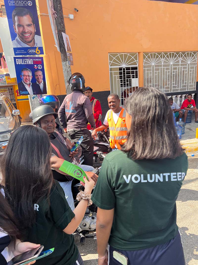 Junto al recipiente, mejor conocido como Nuvi, alumnos del ABC entregaron un brochure a los residentes del referido sector para concienciarlos sobre la importancia del reciclaje y su impacto en beneficio del medio ambiente.