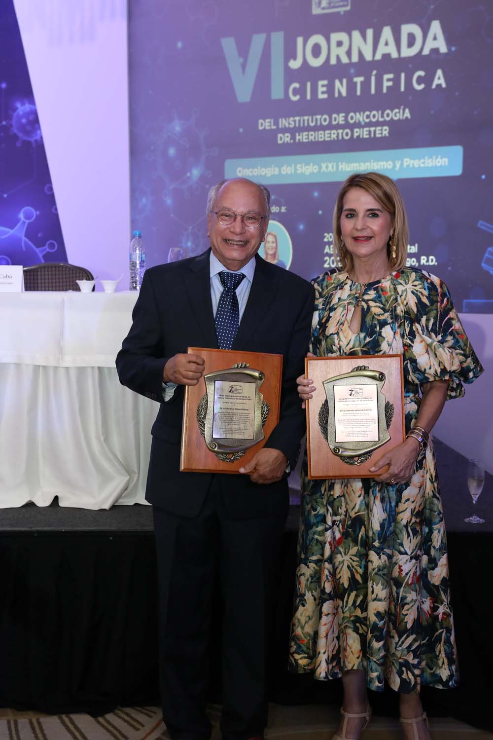 Al acto de apertura asistieron destacadas personalidades del sector salud y del ámbito oncológico. La Jornada Científica está dedicada a Rosa Ivanovna Varela, presidenta de la Asociación de Voluntarias del IOHP, quien recibió un reconocimiento por su labor altruista y trayectoria de 25 años de servicio ininterrumpido. La entrega fue realizada por la presidenta de la Liga Dominicana Contra el Cáncer (LDCC), Julia Guerra de Oller y por la doctora Vassallo.