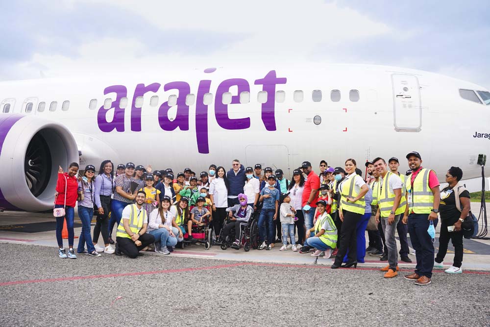 Santo Domingo.- En el marco del Día Internacional de Lucha Contra el Cáncer Infantil la línea aérea Arajet realizó la actividad “Piloto por un Día”, donde participaron niños del Servicio de Pediatría Oncológica del Instituto de Oncología “Dr. Heriberto Pieter”, quienes vivieron una extraordinaria experiencia al conocer el interior de un avión y compartiendo en la cabina con los pilotos.